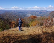 紅葉が盛りと思われる甑山を秋田側から登ってきた。この日、宮城県側は曇りで、鬼首道路を秋田側へ抜けた途端に青空が広がった。少し積雲が出始めているため、天気が持つのは午前中だけであろう。【 10/25 甑山(男甑山・981m) 秋田・丁山地 】甑山登山口~県境・