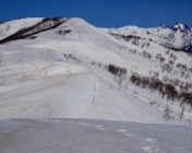 国道112号線(月山新道)を鶴岡方面に走行して行くと、湯殿山スキー場付近から南斜面が雪崩地になって切れ落ちた鷹匠山が見えてくる。田麦俣集落のちょうど北側に位置するその山を、何度も眺めている内に登ってみたくなった。実は2年前から登頂を狙っていたのだが、昨年の残