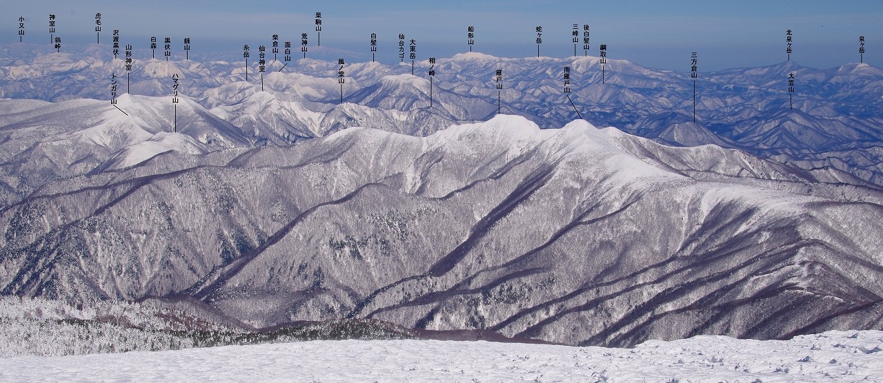 大東岳周辺の雪景色の山座同定の写真は参考になりました。南面白山が見つけられなかったのが残念。