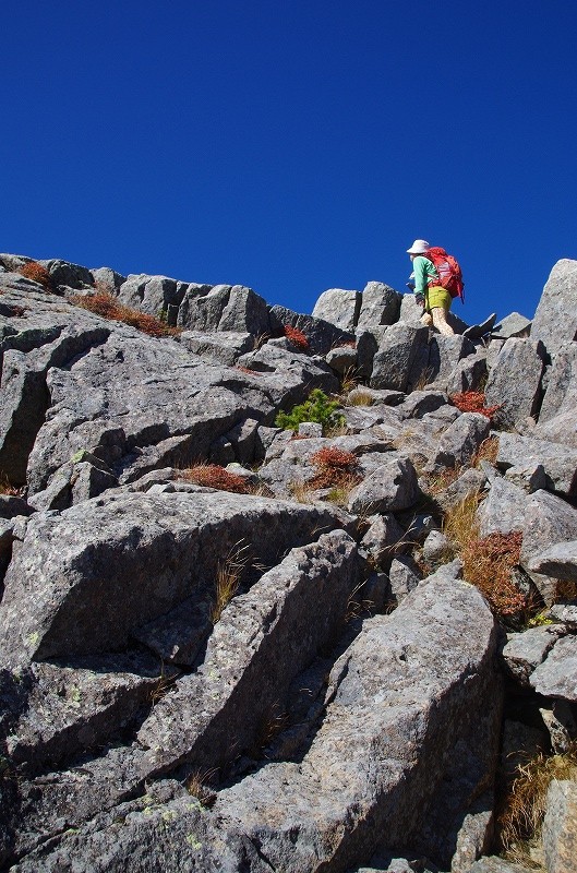 岩峰の上から東大巓を望む。