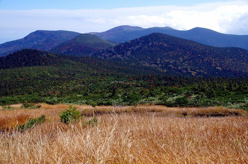 途中の傾斜湿原から弥兵衛平を見下ろす。