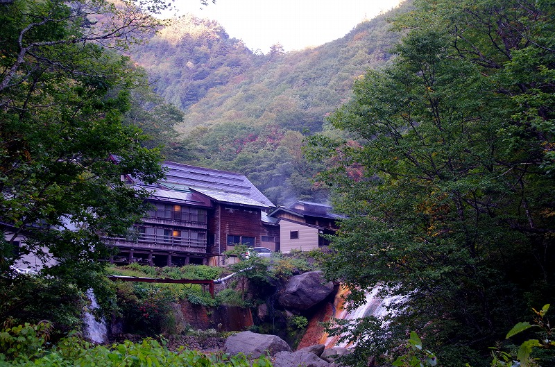 温泉の駐車場では大滝川を遡行する沢登りのパーティが登山準備をしていた。