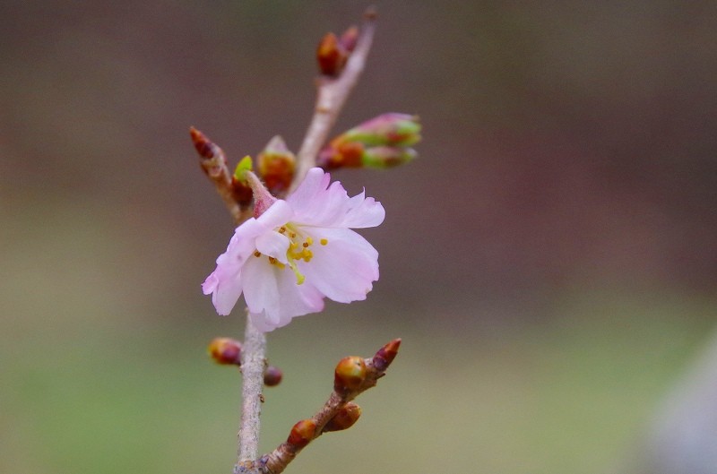 登山口の傍にジュウガツザクラであろうか、小さな花びらの桜が咲いていた。