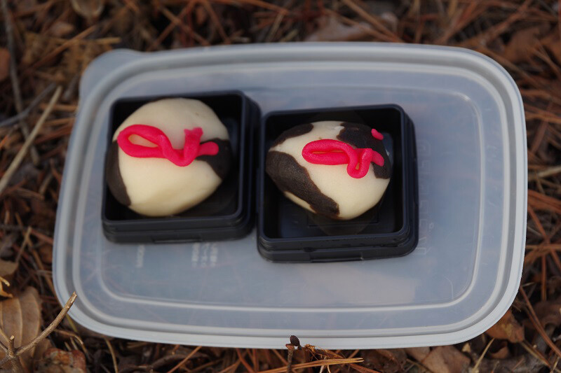 そんな歴史に思いを馳せ、寝牛城、臥牛城の別名を持つ金山城跡を見下ろしながらマスさんお手製の和菓子『祝丑』を食べる。