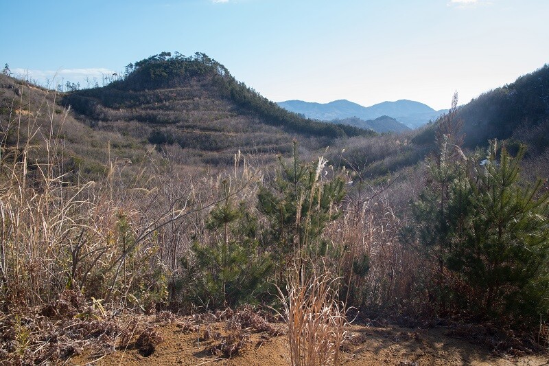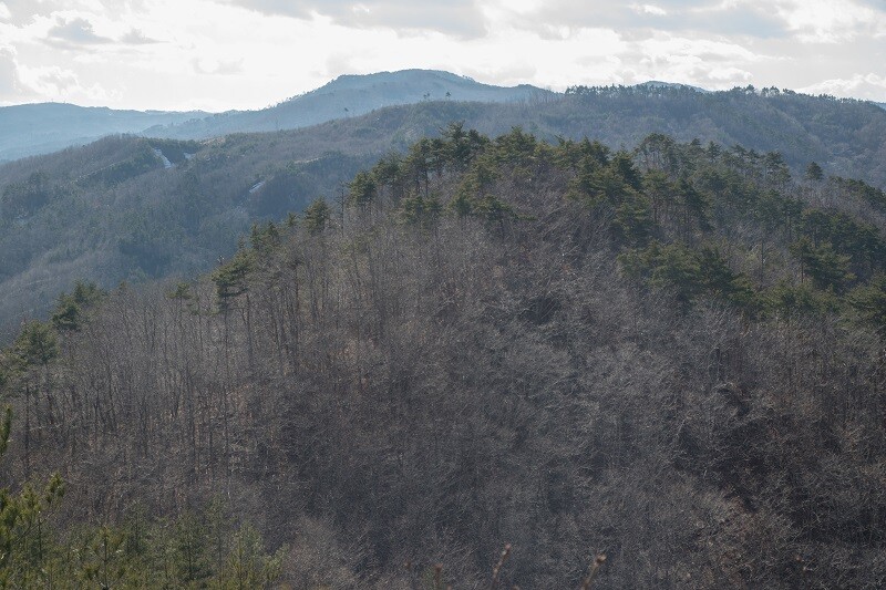 北西のすぐ近くに鬼形山が見える。