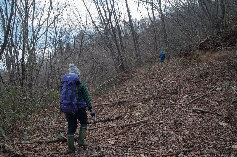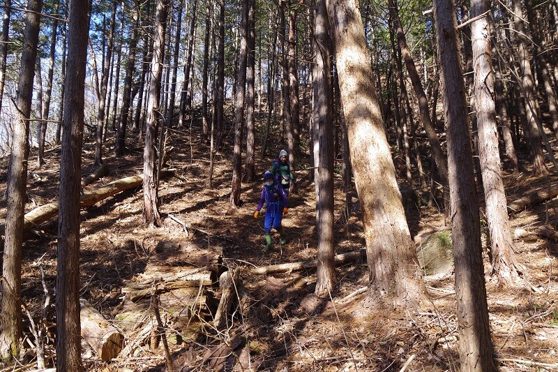 T字路分岐まで戻るとかなり遠回りになるので、道のない南斜面を強引に下った。