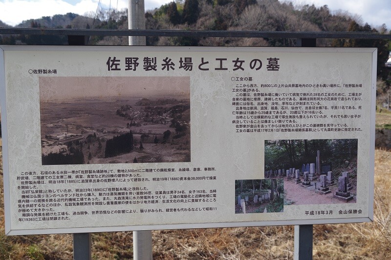 佐野製糸場跡の説明看板。