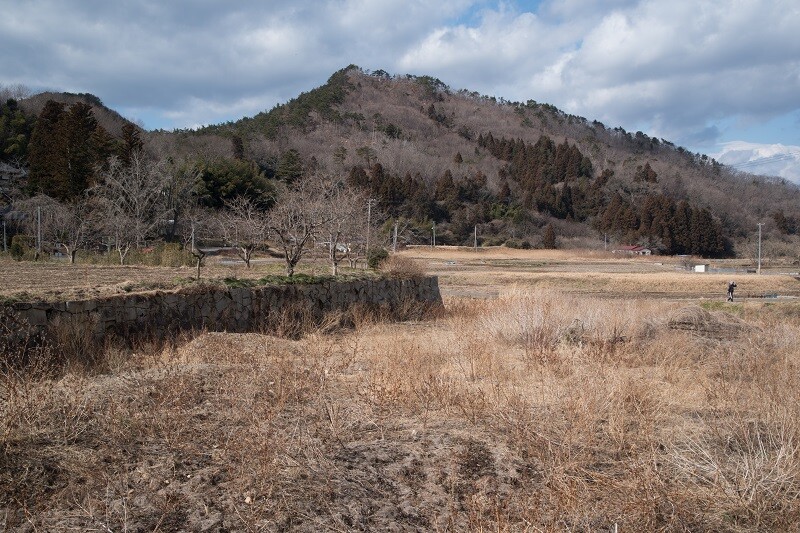 奥の山の一番右手にある三角形の低い山の名も石倉山だ。