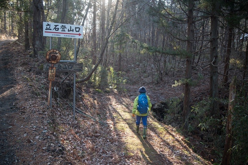 その少し先の右側に立石登山口の大きな看板が設置されていた。