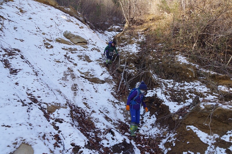 ブル道は一か所崩壊しているので先に進めない。崩壊地を慎重に下って下部のブル道に合流。