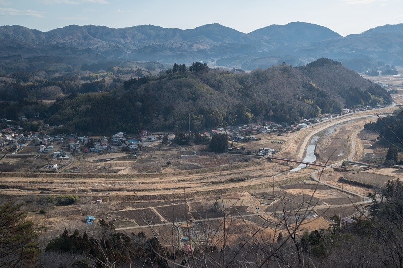 視線を左に振ると金山城跡が俯瞰できる。