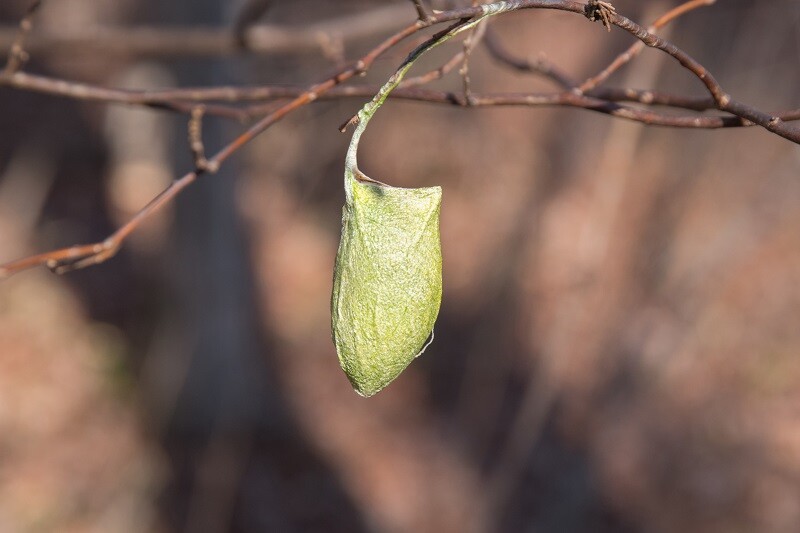 腰を下ろしている傍らにウスタビガの繭がぶら下がっていた。