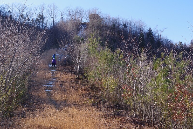 下りのルートを西側に振り過ぎると有刺鉄線の柵に囲まれた弾薬庫?の上に出てしまうので、GPSでルートを確認しながらそちらに寄らないように下る。
