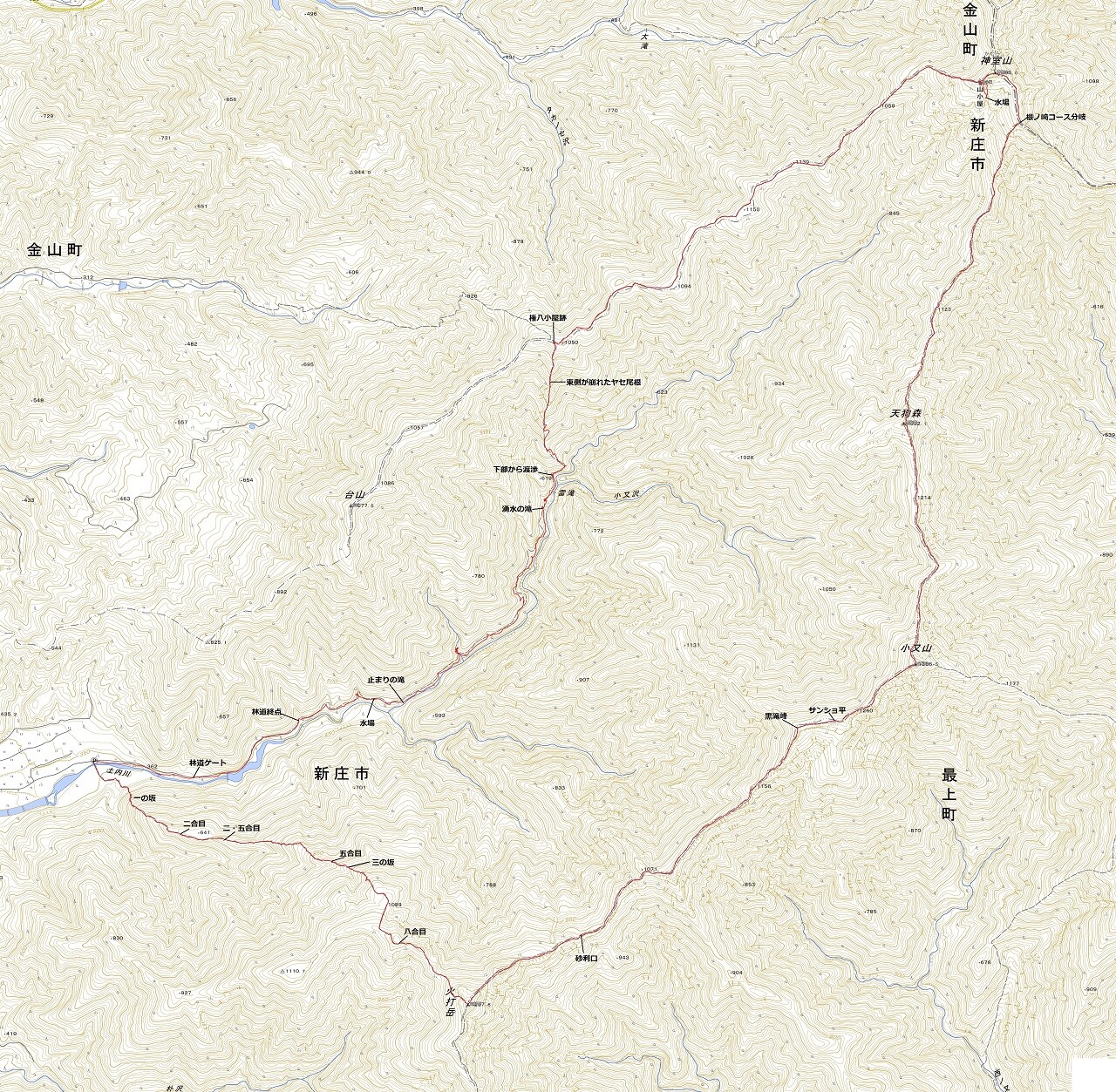 地図の登山道調査目的で火打新道登山口を起点に、火打岳から神室山を半時計回りで周回したきた。